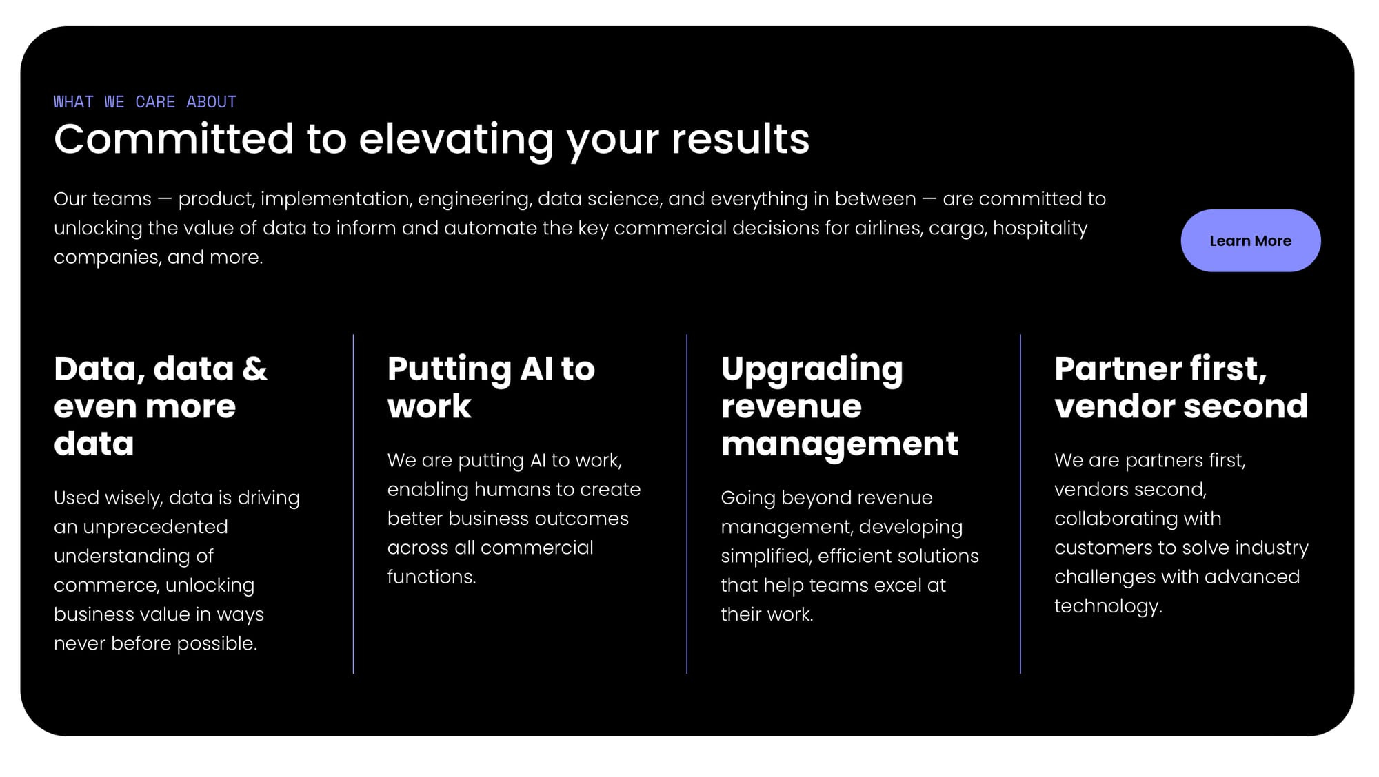 Summary: A built-for-purpose platform that enables travel and transportation leaders to make confident commercial decisions and exceed modern e‑commerce expectations. FLYR combines practical AI and legacy-free solutions to power the ultimate commercial competitive advantage for travel and transportation companies.