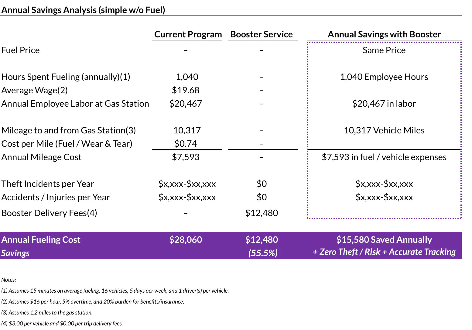 Impact Assessment: Evaluation of the environmental and economic impact of Booster Fuels' services on customer operations.